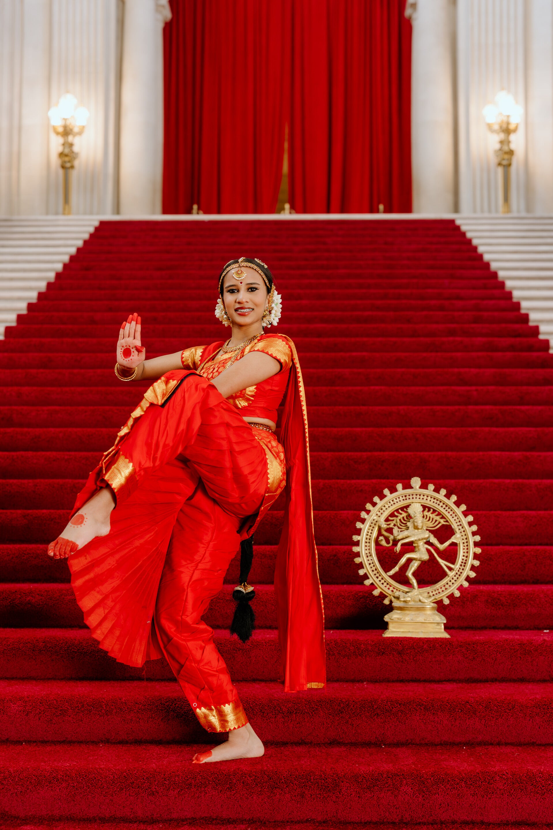 The Bharatanatyam Arangetram of Aahana Elangovan is a proud and historic celebration, presented as part of the Alaraippu Dance School’s. Aahana's journey began under the guidance of her early teachers, and she continues to learn and grow under the mentorship of Mrs. Radhika Dinesh at Alaraippu Dance School in Mountain House, CA.